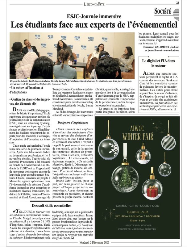L’ESJC a le plaisir d’annoncer la publication d’un article rédigé par Emmanuel Walombwa, étudiant en deuxième année, dans le quotidien L’Économiste.
