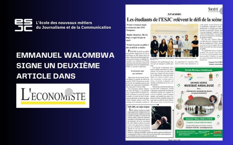 L’ESJC a le plaisir d’annoncer la publication d’un article rédigé par Emmanuel Walombwa, étudiant en deuxième année, dans le quotidien L’Économiste. Ce...