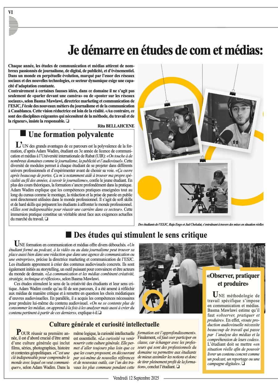 L’Objectif: offrir aux journalistes, partenaires et curieux un accès centralisé à toutes les actualités institutionnelles qui reflètent la dynamique de l’école. Transparente, active et engagée, l’ESJC valorise ici sa communication de marque et son rayonnement médiatique.